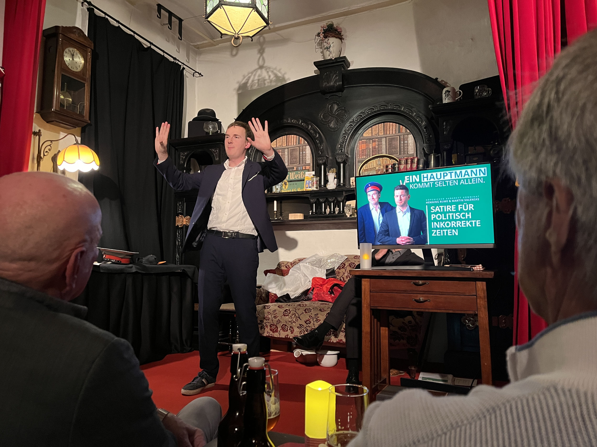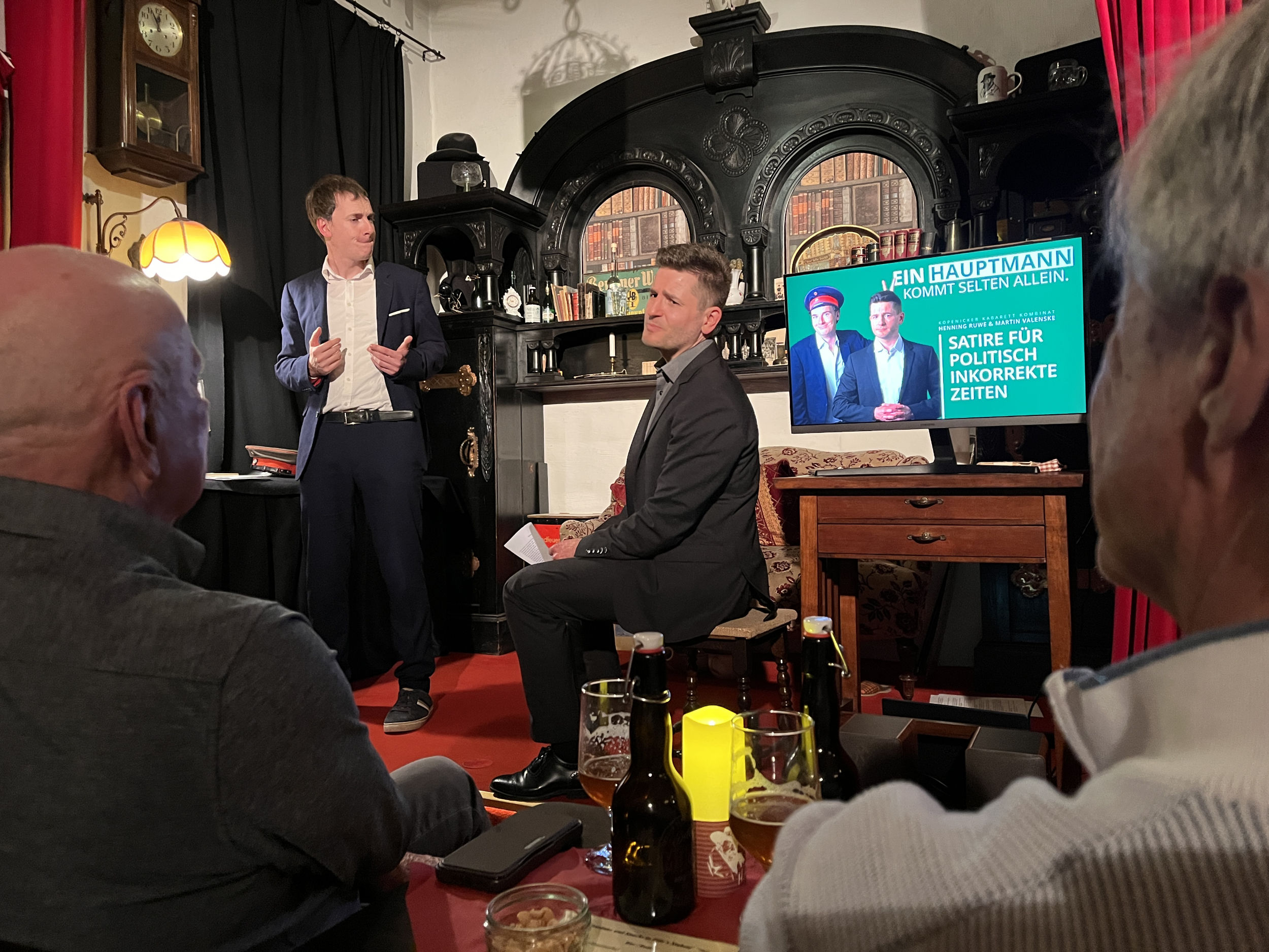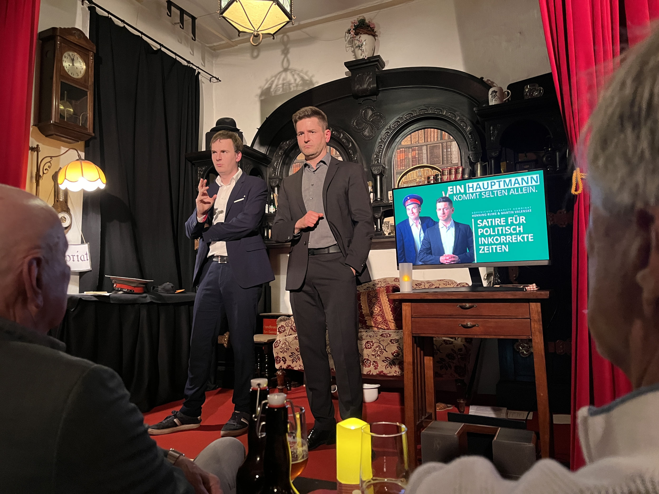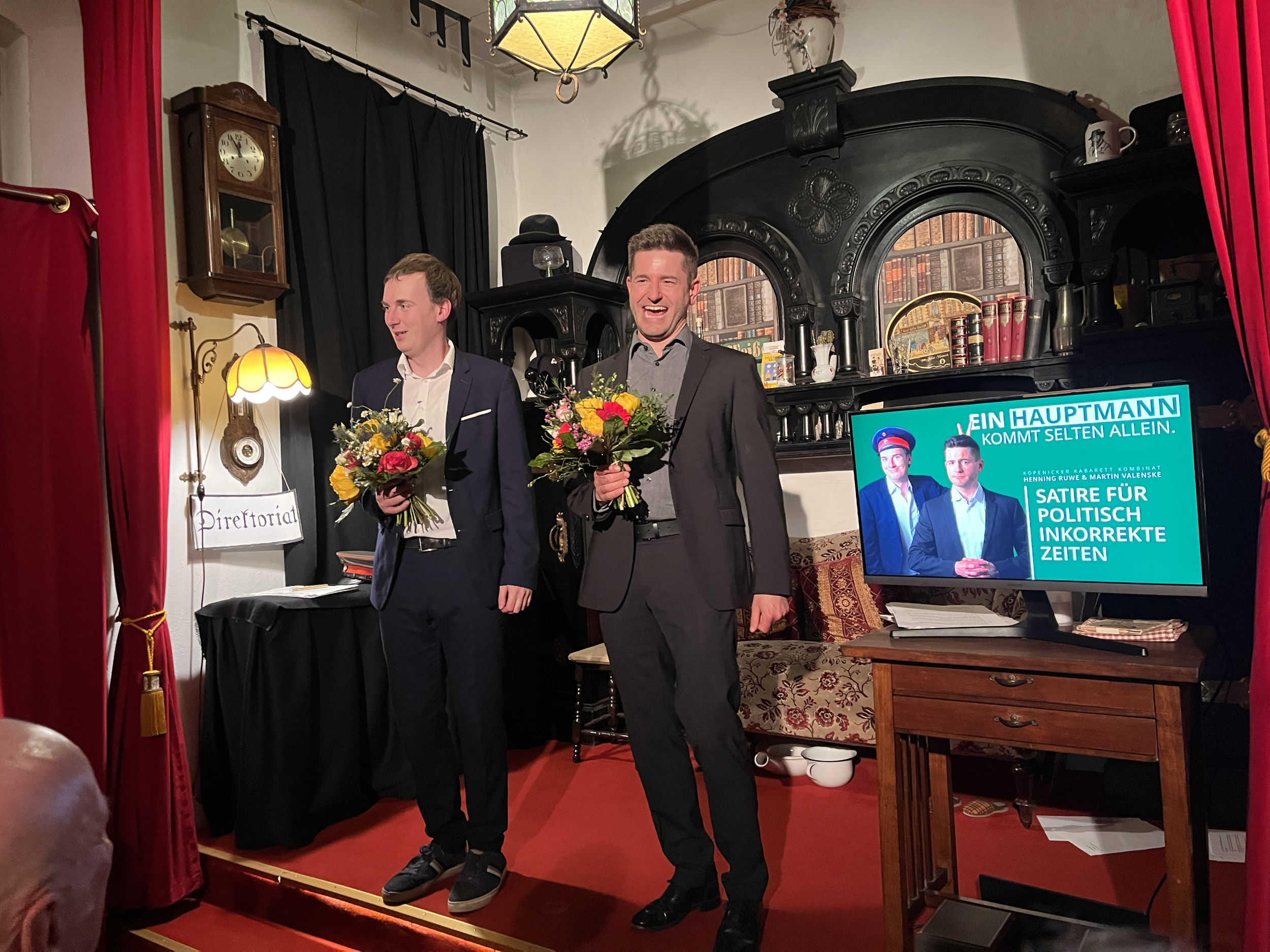 „Ein Hauptmann kommt selten allein“, Kabarett mit Henning Ruwe und Martin Valenske am Sonntag, den 7. September um 16 Uhr! Diese Herren sind die neuen humoristischen Hochstapler, bekannt aus der Berliner DISTEL, waren sie bei uns bereits zu sehen in „Unfreiwillig komisch“ und ihren Jahresrückblicken „Es war ja nicht alles gut“ u.a.. Jetzt machen sie in schicker Anzug-Manier einen auf Hauptmann und bilden das neu gegründete Köpenicker Kabarett Kombinat! Obacht: Das wird eine herrlich absurde Reise mit jeder Menge feinem Unfug.