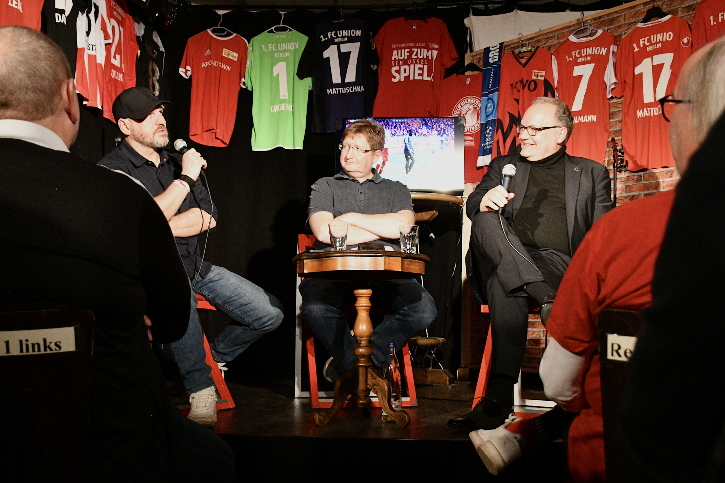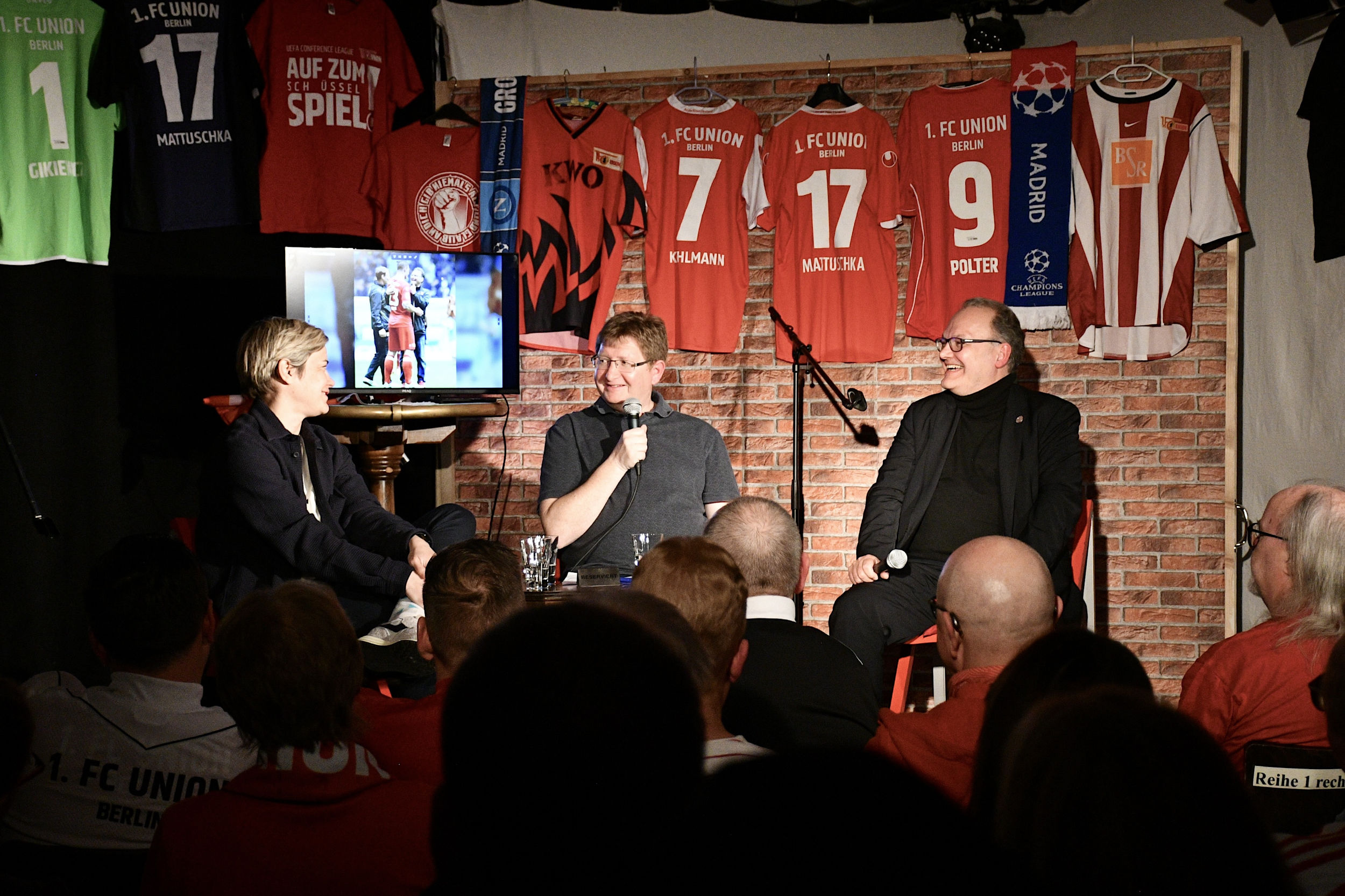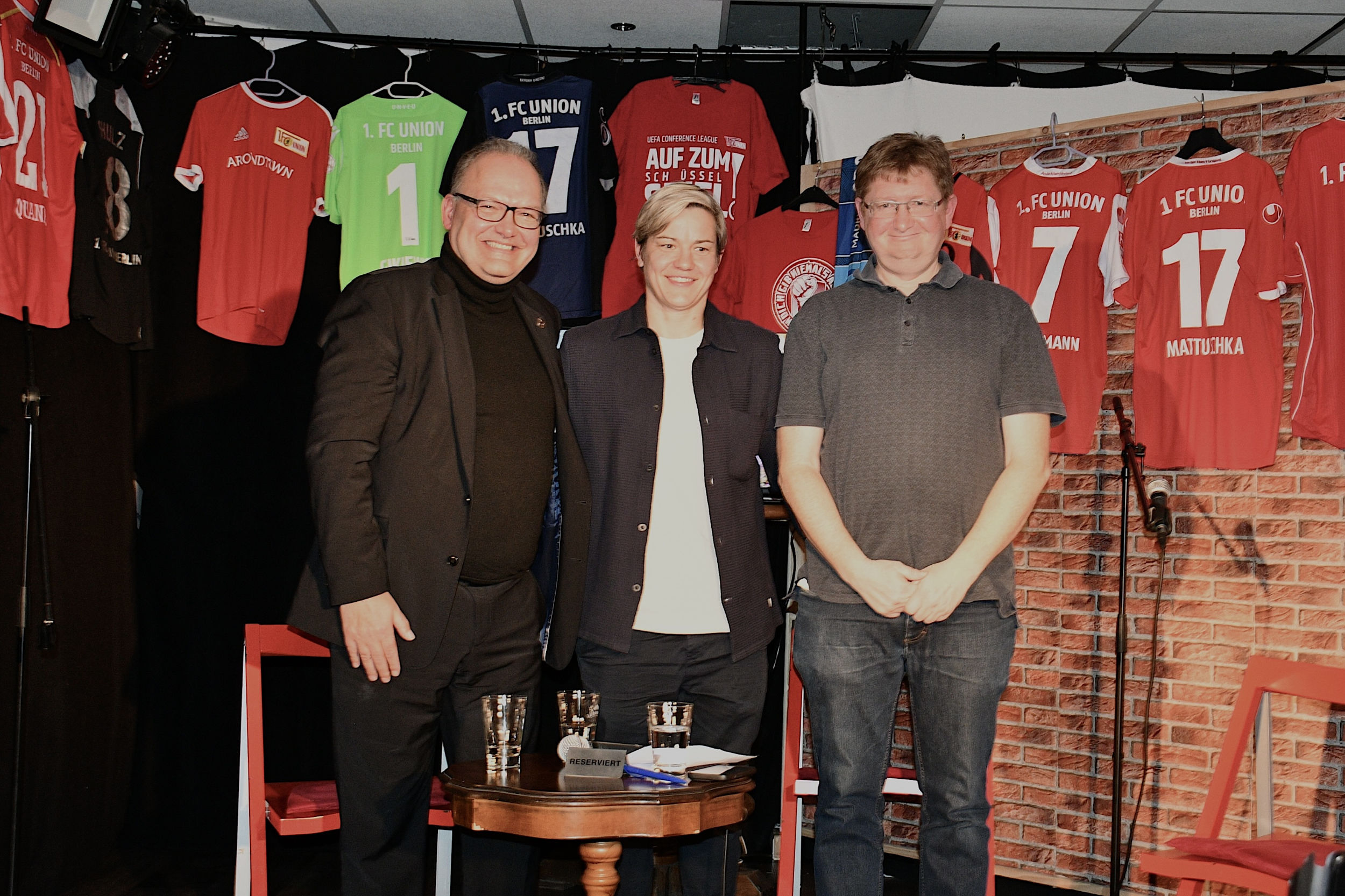 Seine Gäste waren Nico Schäfer, Ex-Union-Manager (jetzt SV Wehen-Wiesbaden) und Jennifer Zietz, Geschäftsführerin Profifußball Frauen 1. FC Union Berlin.