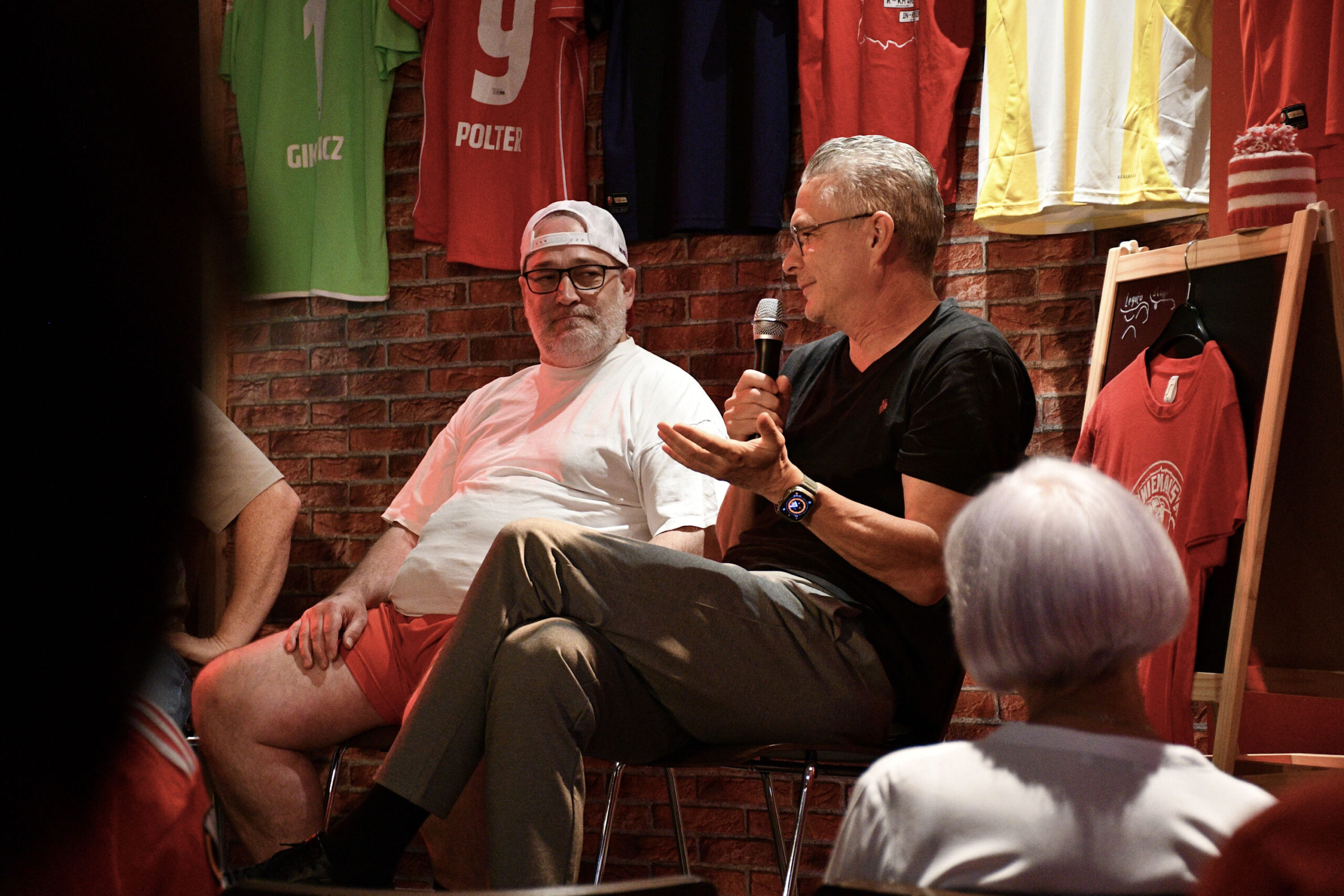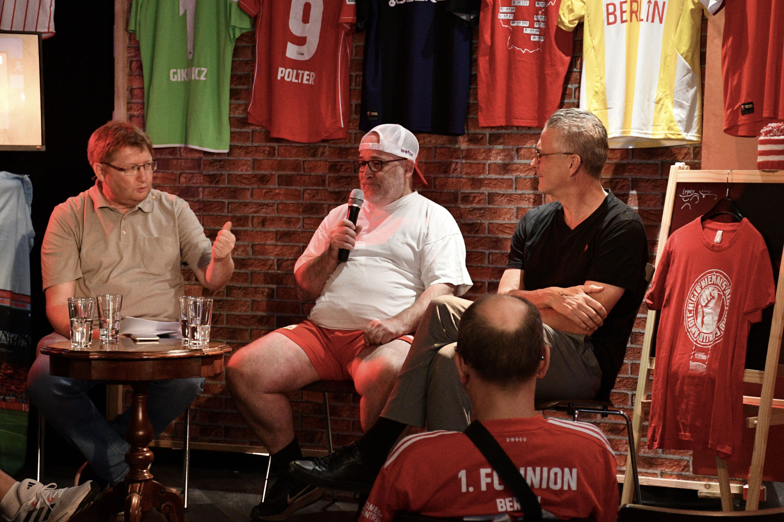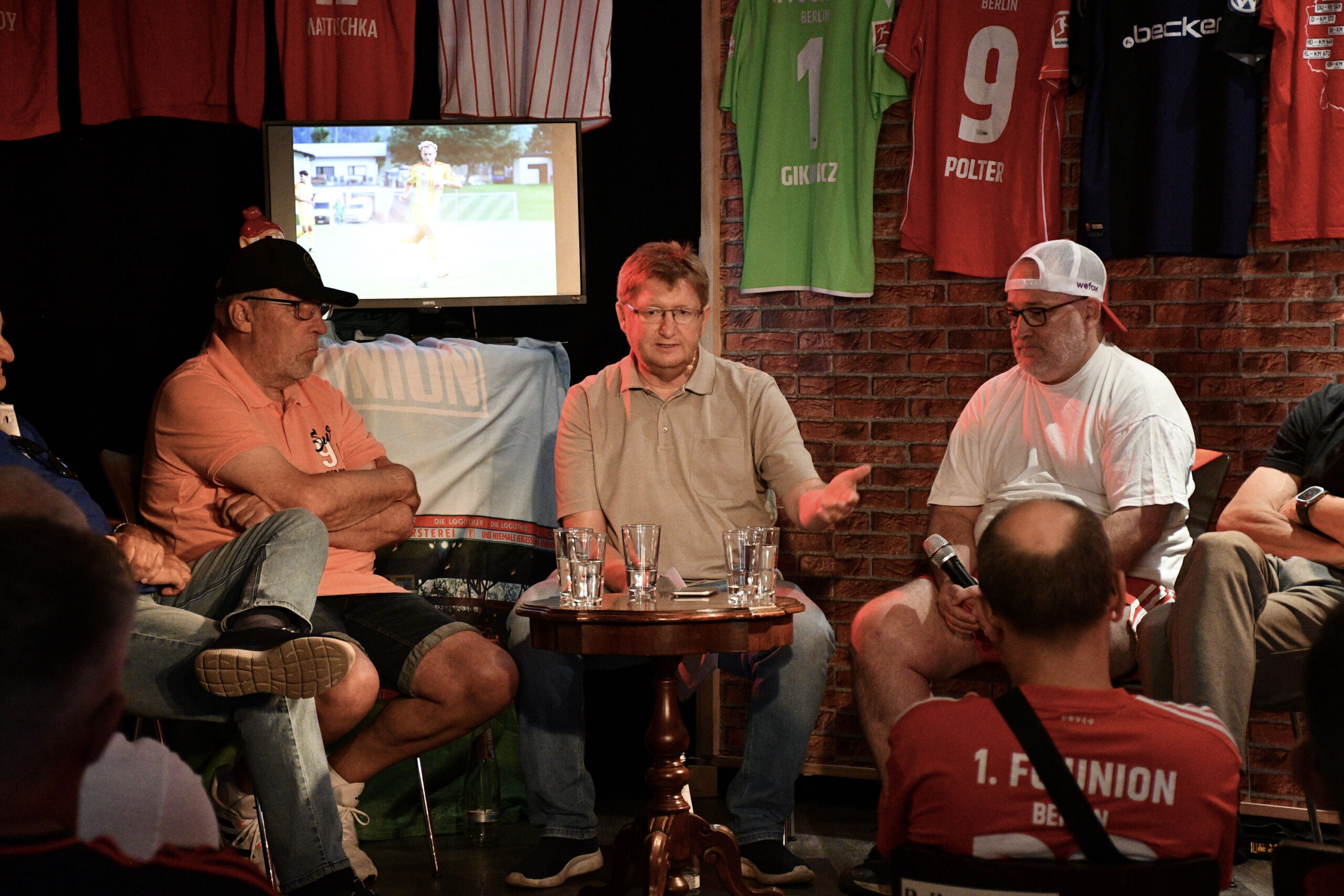 In der heiteren Runde ging es um die aktuelle Saisonvorbereitung, die Arbeit vom Gespann Horst Heldt/Bo Svensson im Vergleich zu ihren Vorgängern, die Entwicklung von Union in Bezug auf die Vereinsführung, getätigte und noch zu erwartende Spieler-Zu- und -Abgänge, den Frauenfußball, die neuen Union-Trikots und deren Online-Präsentation und den bevorstehenden Stadionumbau. Es wurde locker und hier und da auch mal hitzig diskutiert, immer fair, mit einer großen Briese Humor und spannenden Anekdoten und Hintergrundinformationen.