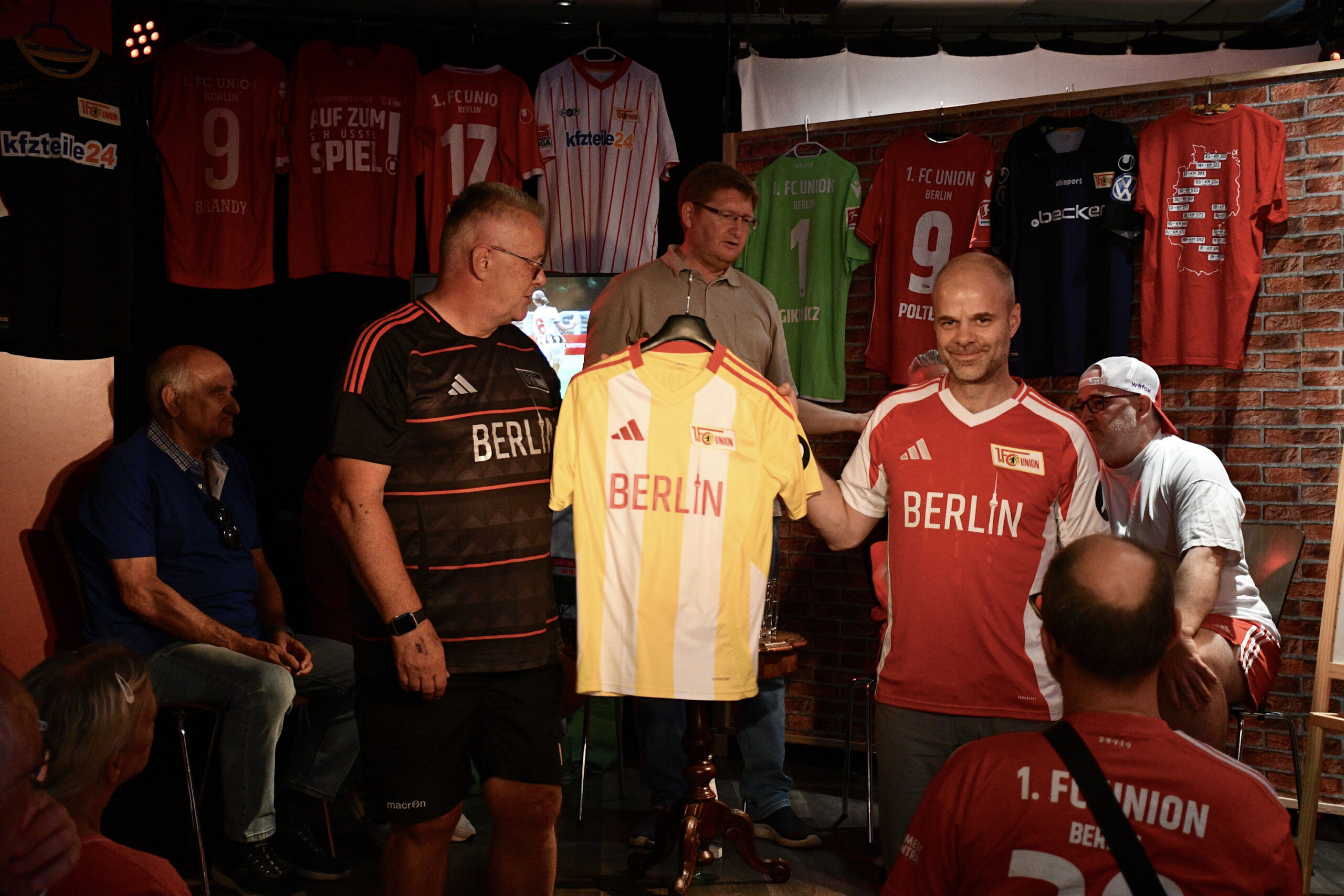 Mit dabei waren Ex-Spieler und -Manager Christian Beeck, Torwart-Legende Wolfgang „Potti“ Matthies, Traditionsauswahl-Trainer Detlef Schwarz und Marko „Anno“ Briesemeister vom Union-Fanclub Die Eisernen.