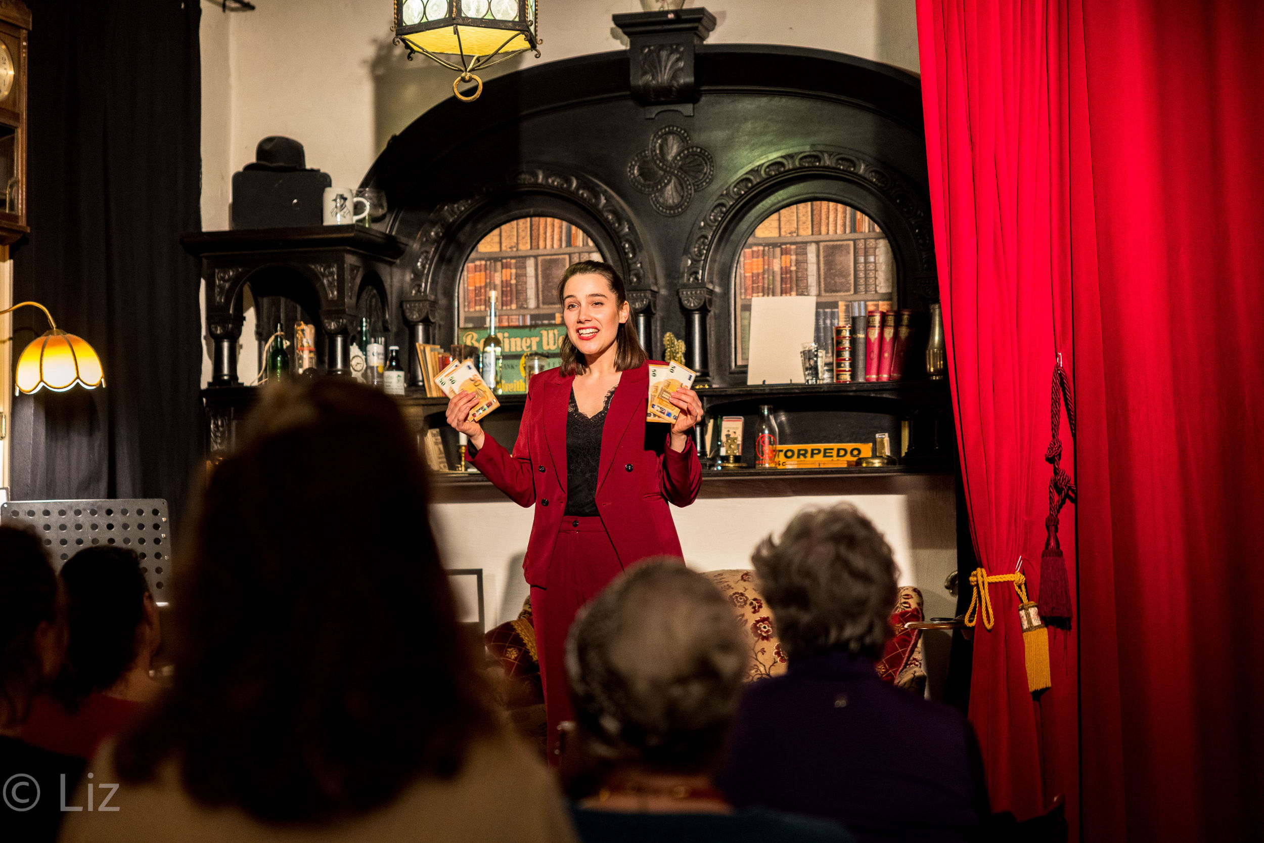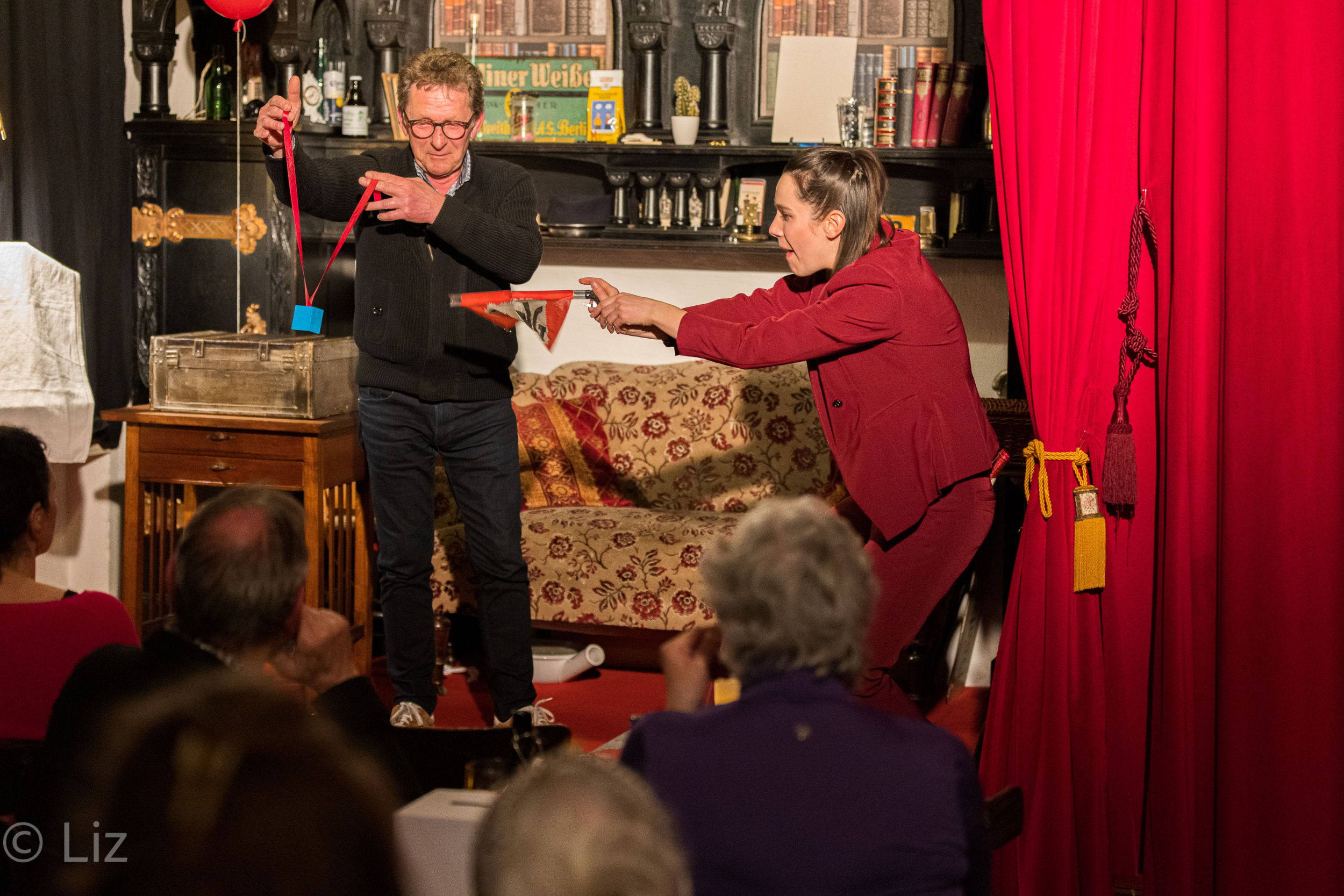 Allison Wonder brachte mit „Magie der Entzauberung“ ihr erstes abendfüllendes Programm erfolgreich über die Bühne. Unser Stubentheater war bis auf den letzten Platz gefüllt und so lachten und staunten wir gleichermaßen, wenn Allison Wonder alias Annika Nippoldt solo oder mit Gästen auf der Bühne kreativ, mit viel Witz und Charme ihr Nummern darbot.